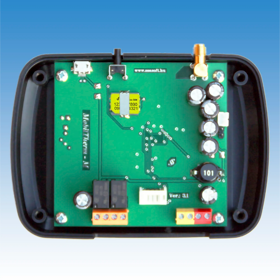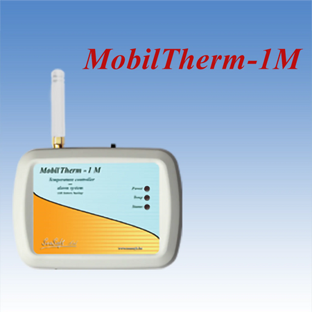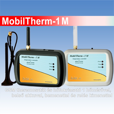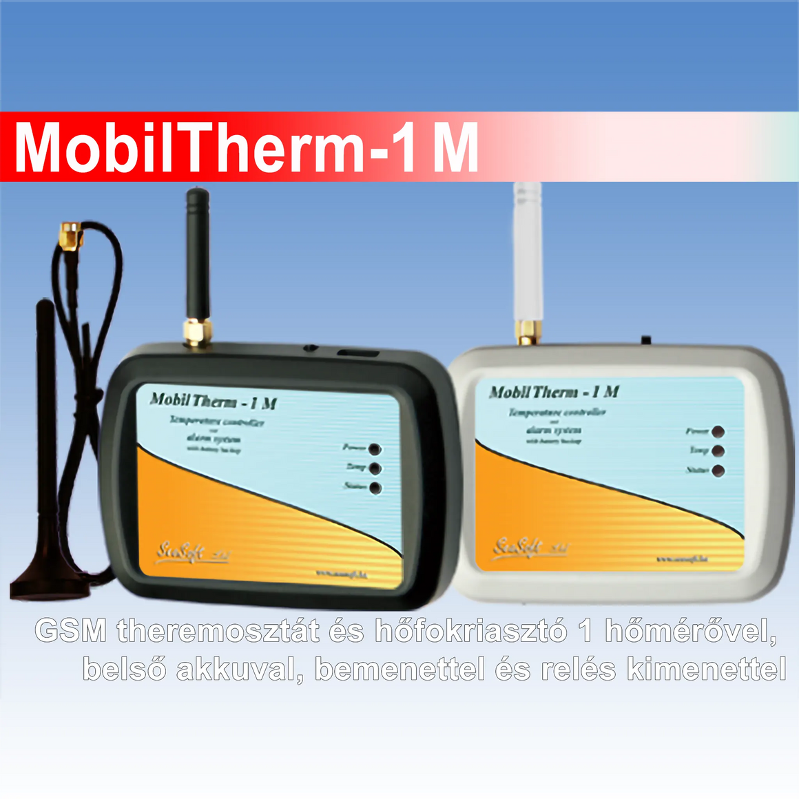 A MobilTherm-1M távmérésre, távjelzésre és távműködtetésre kifejlesztett ipari GSM alapú thermosztát, hőfokjelző és hőfokriasztó modul. A GSM modul belső Lythium-polimer akkumulátora, külső digitális hőmérője, feszültségmentes záró kontaktusra aktiválódó bemenete és 1+1 db egyáramkörös, kisáramú relés kimenete van. Általános relés kimenete egy-egy SMS-sel kapcsoltathatók ki- és be bistabil (csak újabb SMS-re változó) állapotba, vagy monostabil állapotba, azaz egy parancs SMS hatására adott időre meghúzattathatók, mely idő leteltekor a relék automatikusan kikapcsolnak. A modulhoz csatlakoztatható digitális hőmérő -50C és +50C fok között tud mérni és szabályozni. A beállított alsó és felső hőmérsékleti határokat átlépve a modul a felprogramozott felhasználói talefonszámokra SMS-t fog küldeni, és hanghívást is indít. A digitális bemenet változásairól szintén küld SMS-t. A felhasználók a hőmérsékleti riasztásról vagy a bemenet változásáról előre beállított tartalmú SMS-ben és/vagy telefonhívással értesülnek. A relé No és Com kimenetei vannak kivezetve, így a rákapcsolt fogyasztó alapállapotban kikapcsolt. A relé meghúzásával az bekapcsolható.