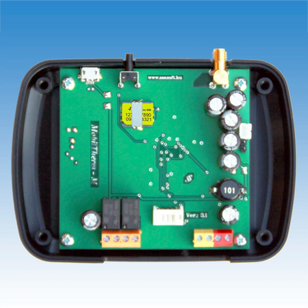 Dobozolt kivitel, hűtés-fűtés funkcióval, relés szabályzó kimenettel, belső digitális hőmérő szenzorral, hívás- és sms riasztás, PC-ről USB-n programozható, ráépített belső bot antennával.