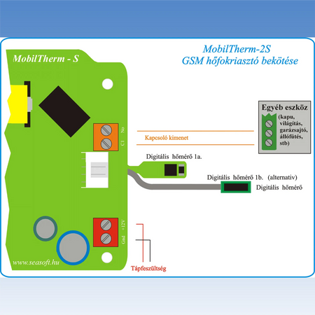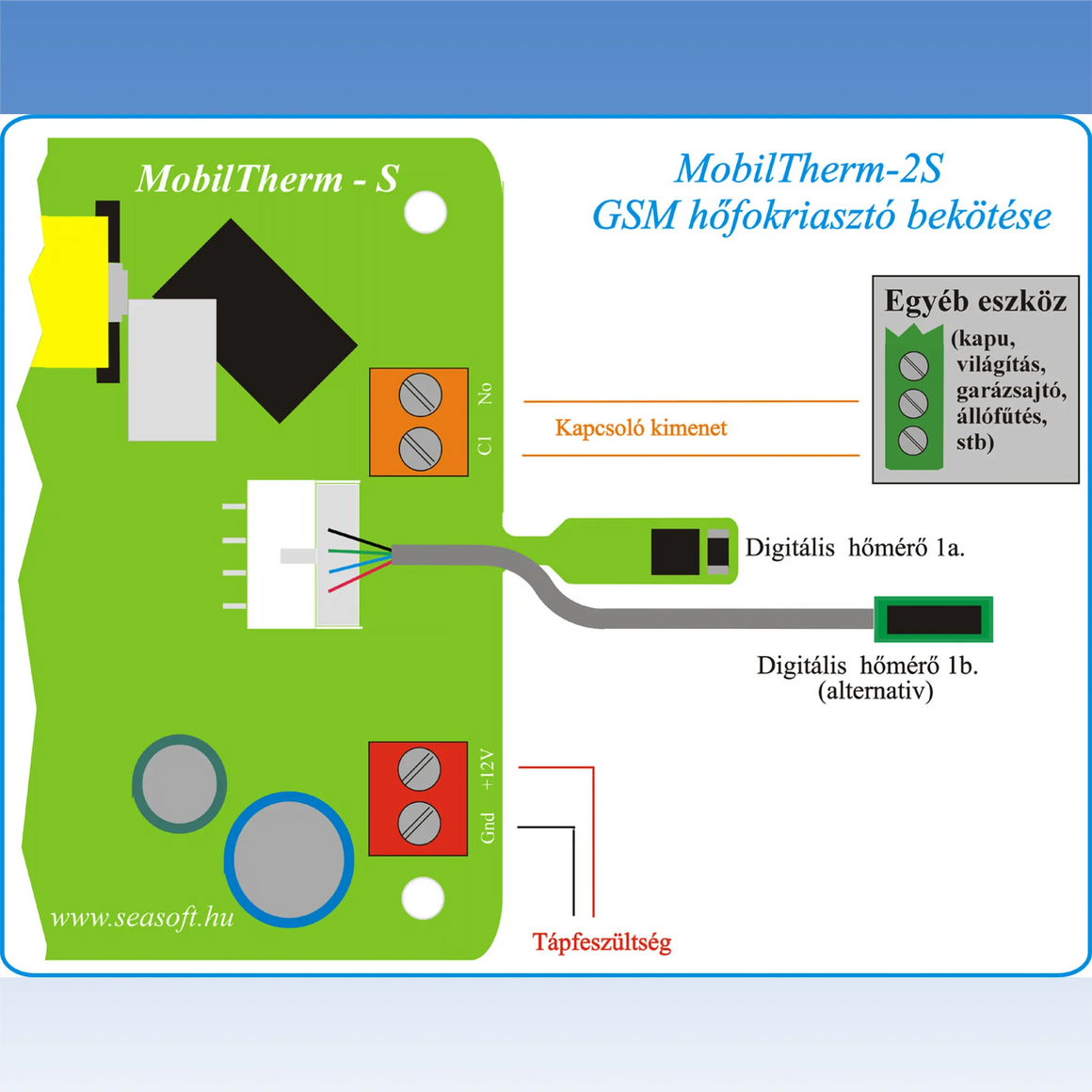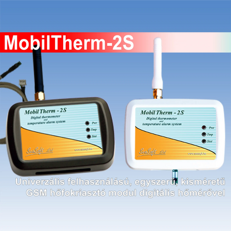 A MobilTherm-2S egy egyszerű, általános célú távhőmérésre, távjelzésre és távműködtetésre kifejlesztett hőfokjelző és hőfokriasztó modul. A GSM hőfokjelző-riasztó modul belső vagy külső digitális hőmérővel, és egyáramkörös kisáramú relés kimenettel rendelkezik. A relés kimenete egy-egy SMS-sel kapcsoltatható ki-be bistabil (csak újabb SMS-re változó) állapotba, vagy monostabil állapotba, azaz SMS hatására adott időre meghúzattatható, mely idő letelte után ez a relé automatikusan kikapcsol. A modulhoz csatlakoztatható digitális hőmérő -50C és +50C fok között tud mérni. A beállított alsó és felső hőmérsékleti határokat átlépve a modul a felprogramozott felhasználói telefonszámokra SMS-t fog küldeni. A digitális bemenet változásairól szintén küld SMS-t. A felhasználók a hőmérsékleti riasztásról az előre beállított tartalmú SMS-ben és/vagy telefonhívással értesülnek.